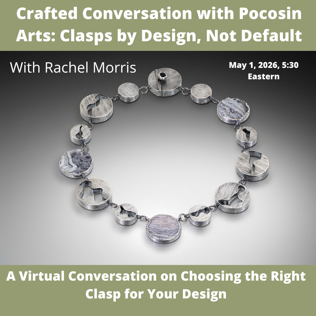 Join me in a virtual session with the folks at Pocosin Arts, discussing clasp functionality and selection. Bring an in-flight project to get recommendations from participants about clasps that might make or break your piece.