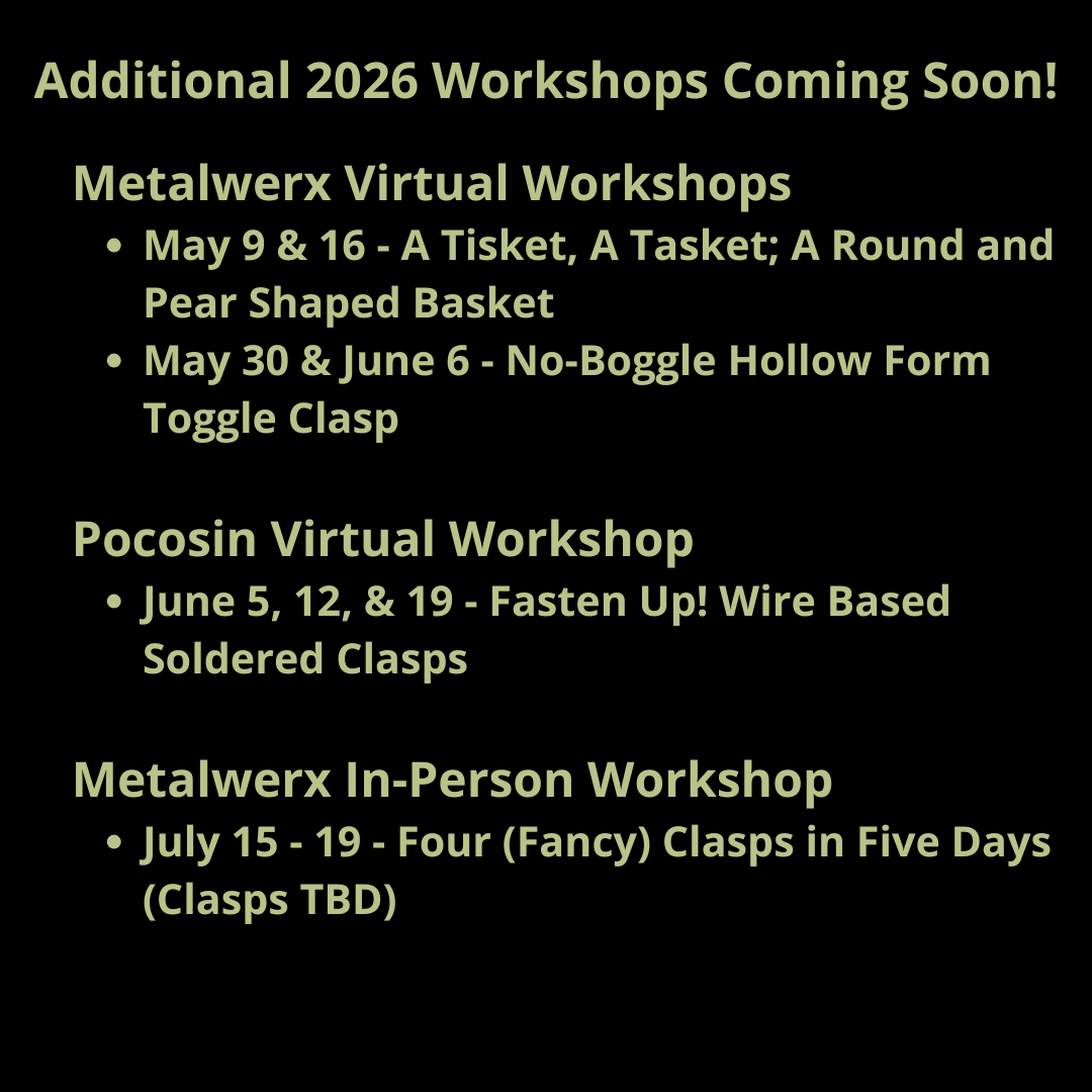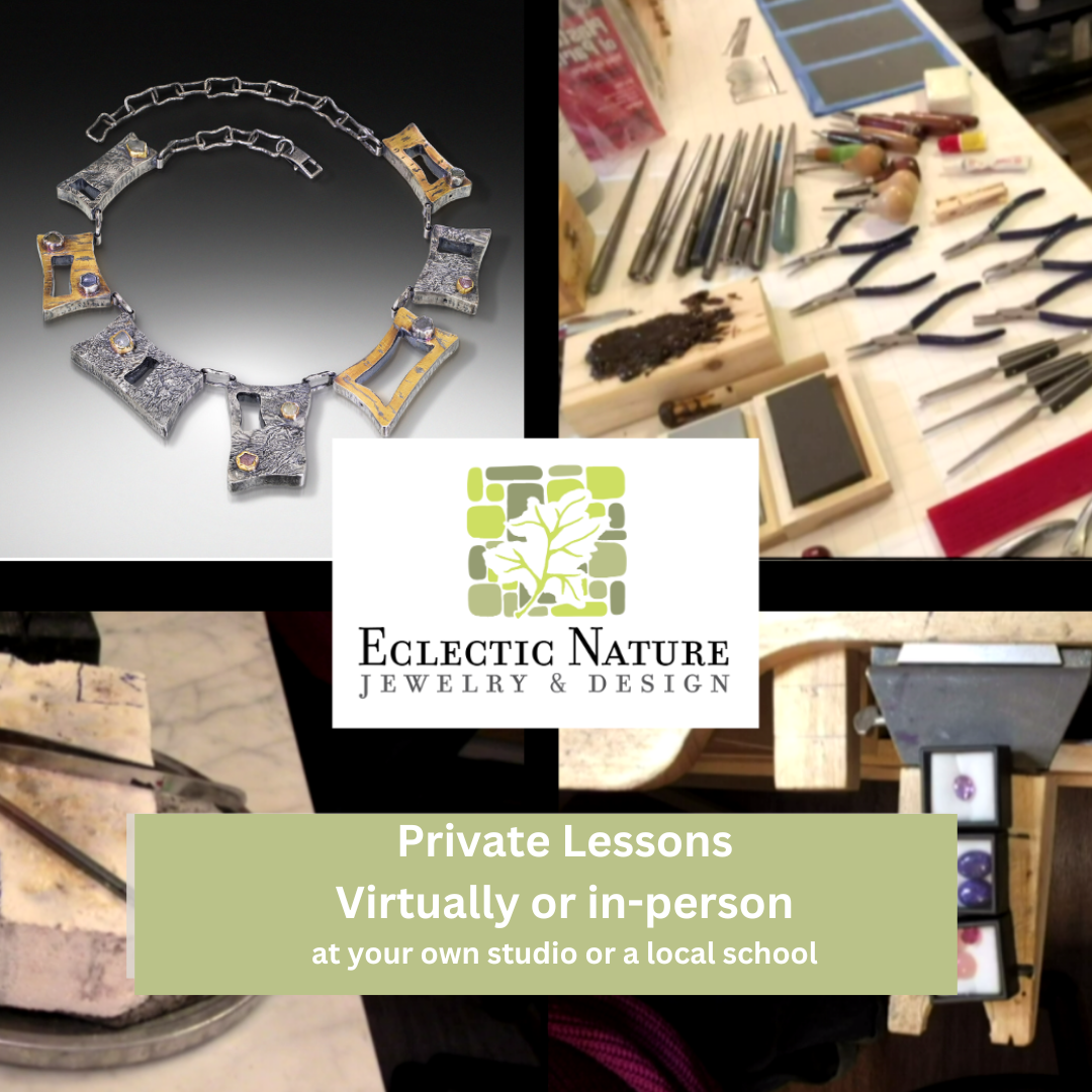 Learn with Rachel from the comfort of your own studio, via online workshops, or invite her to teach at your favorite local metals studio for in-person classes.
