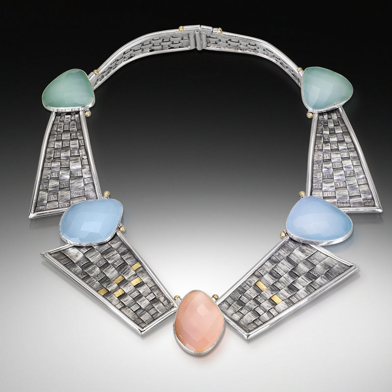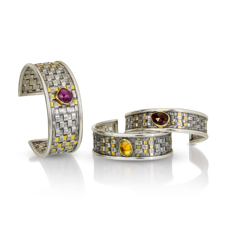 Texture-rich, structural one-of-a-kind statement jewelry, weaving together geometric and architectural forms found in the natural world. Hand-fabricated in precious metals; detailed with cut and raw gemstones and pearls. My art encourages you to confidently present your unapologetic best self.